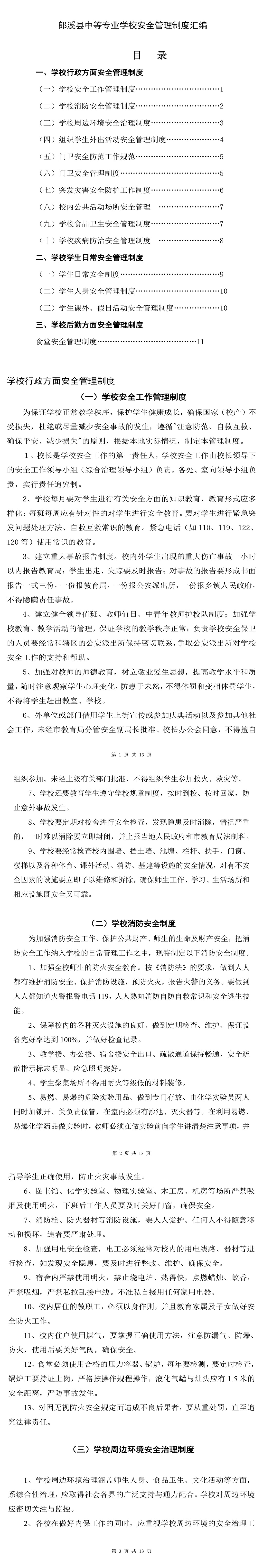 郎溪中等专业学校安全管理制度汇编-尊龙凯时最新