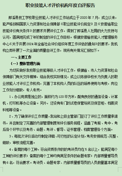 2024年郎溪县技工学校职业技能等级认定评价年度自评报告-尊龙凯时最新