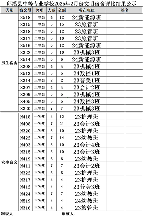 2024-2025学年第二学期2月份百分赛和文明宿舍表彰公示