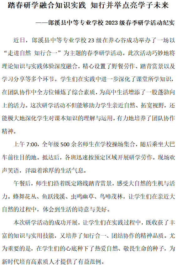 踏春研学融合知识实践 知行并举点亮学子未来
