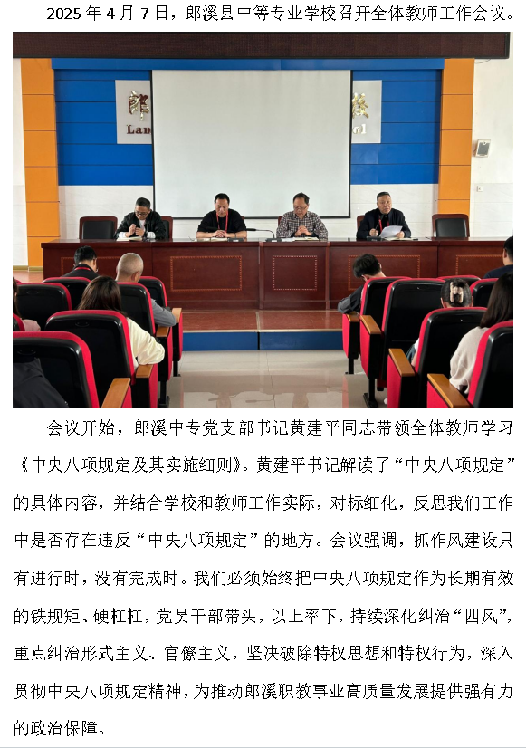 郎溪中专校教师会开展政治学习活动-尊龙凯时最新