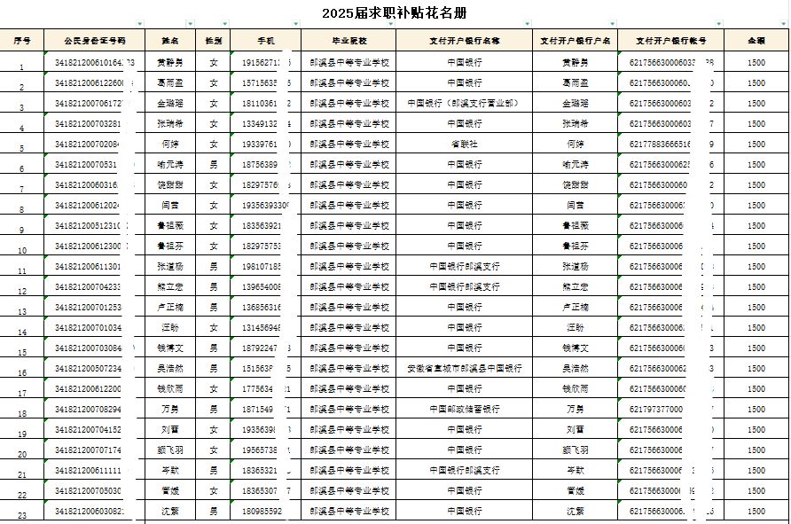 2025届学生就业创业求职补贴第一批发放公示