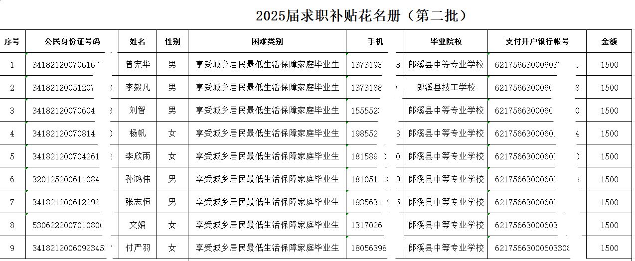 2025届学生就业创业求职补贴第二批发放公示-尊龙凯时最新