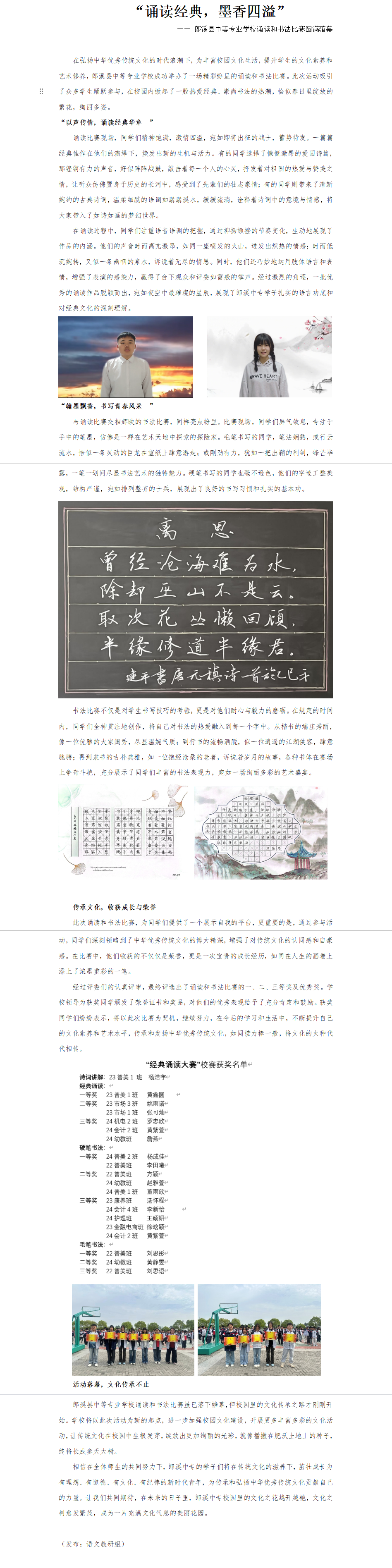 郎溪县中等专业学校诵读和书法比赛圆满落幕