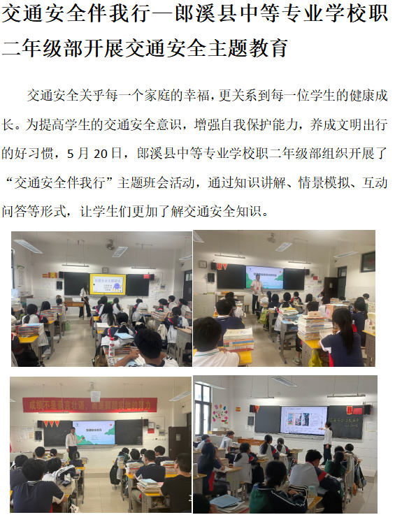 交通安全伴我行—郎溪县中等专业学校职二年级部开展交通安全主题教育