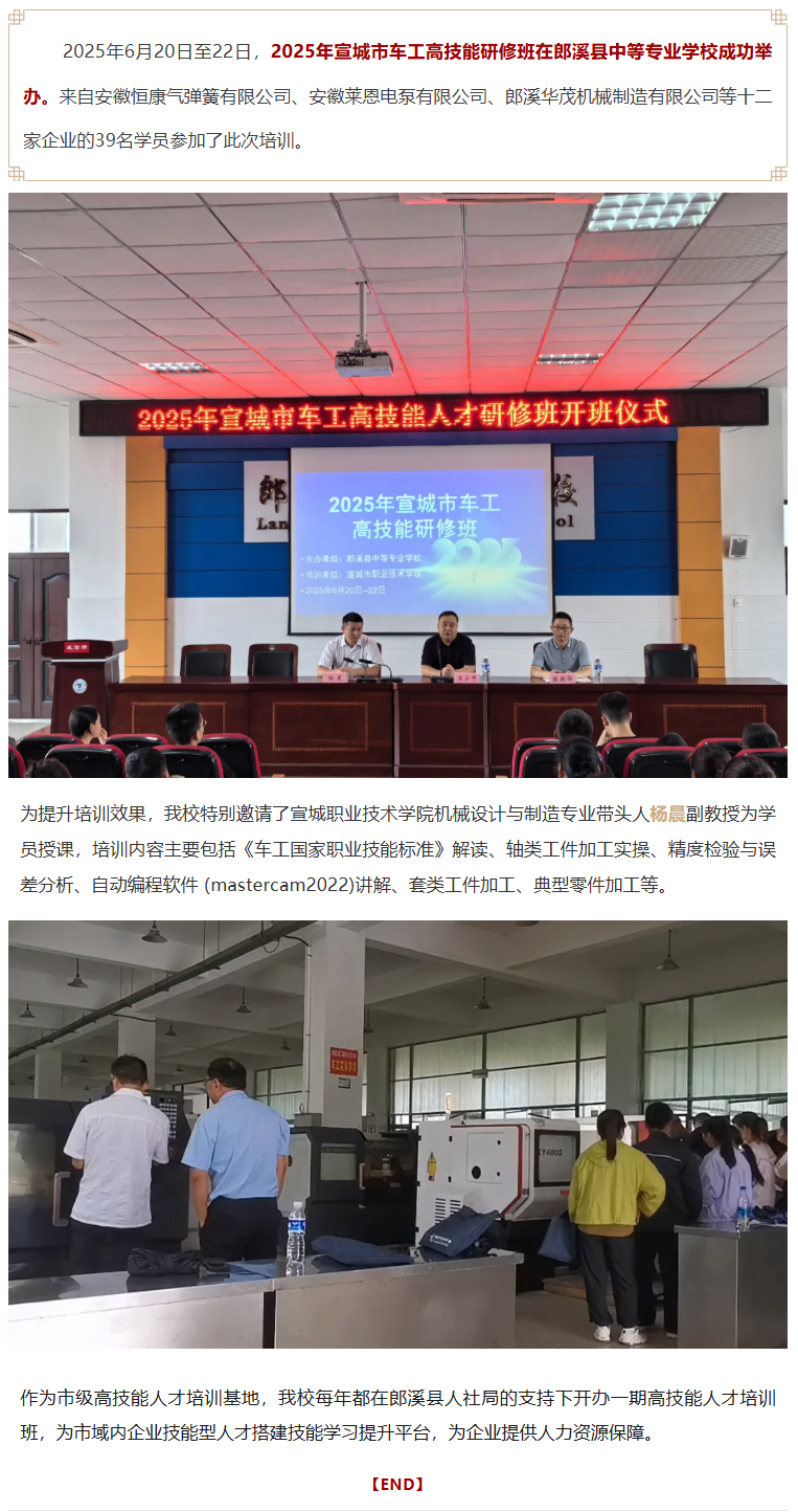 2025年宣城市车工高技能研修班在我校成功举办-尊龙凯时最新