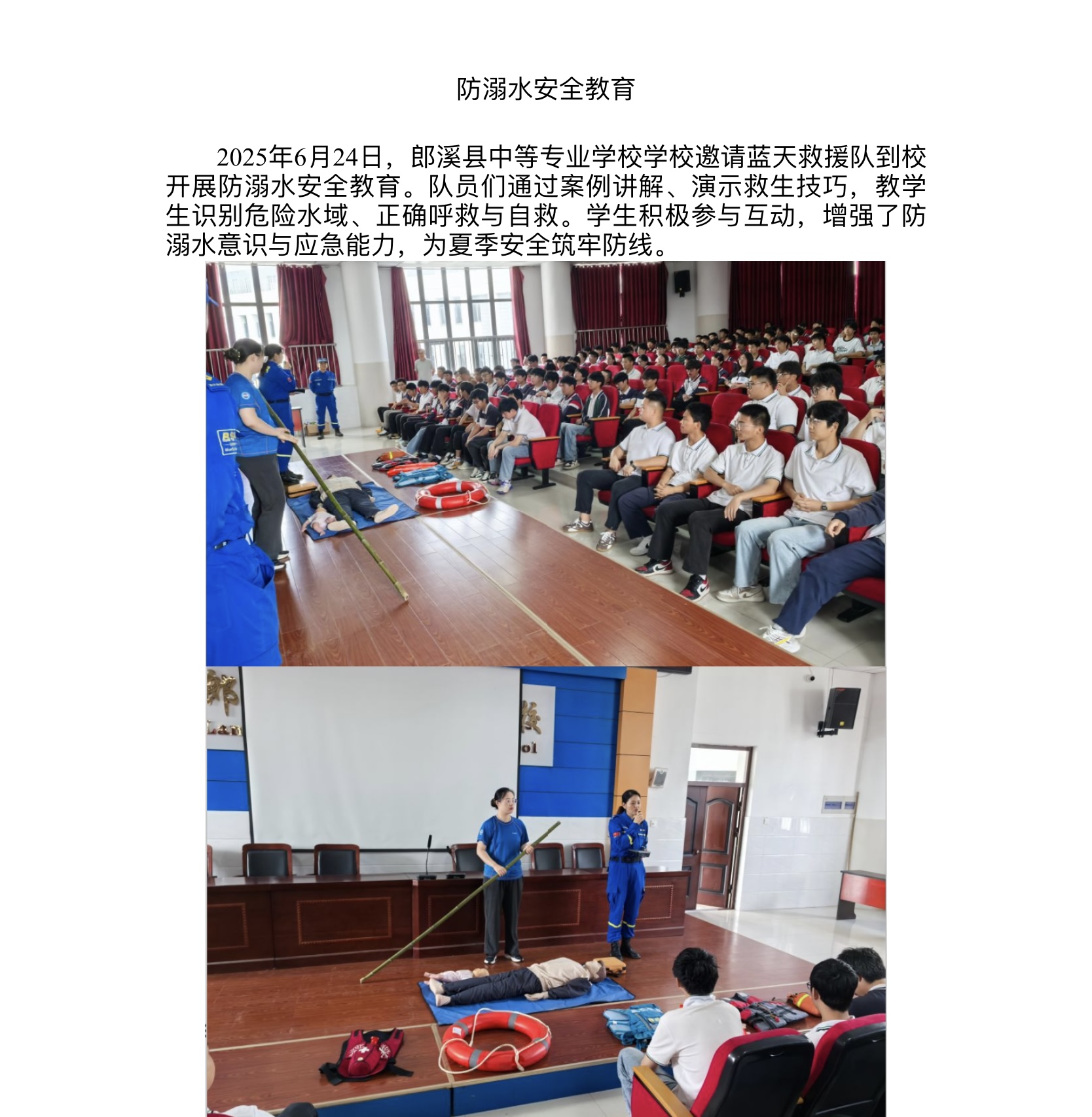 郎溪县中等专业学校防溺水安全教育