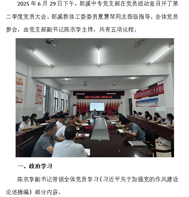 郎溪中专党支部召开第二季度党员大会-尊龙凯时最新