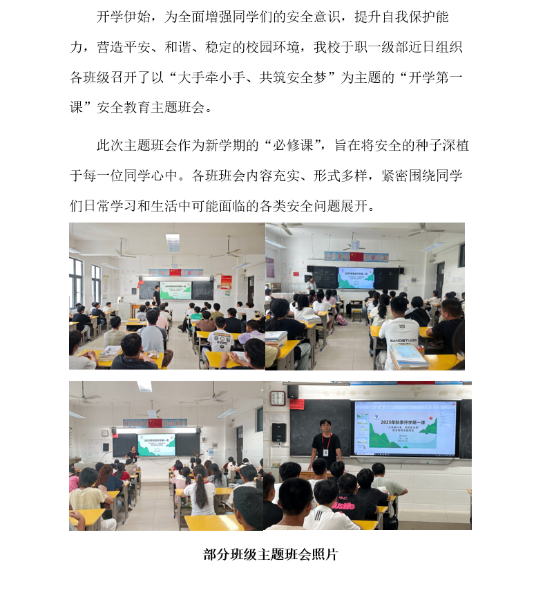 大手牵小手、共筑安全梦 ——我校职一级部召开“开学第一课”安全教育主题班会