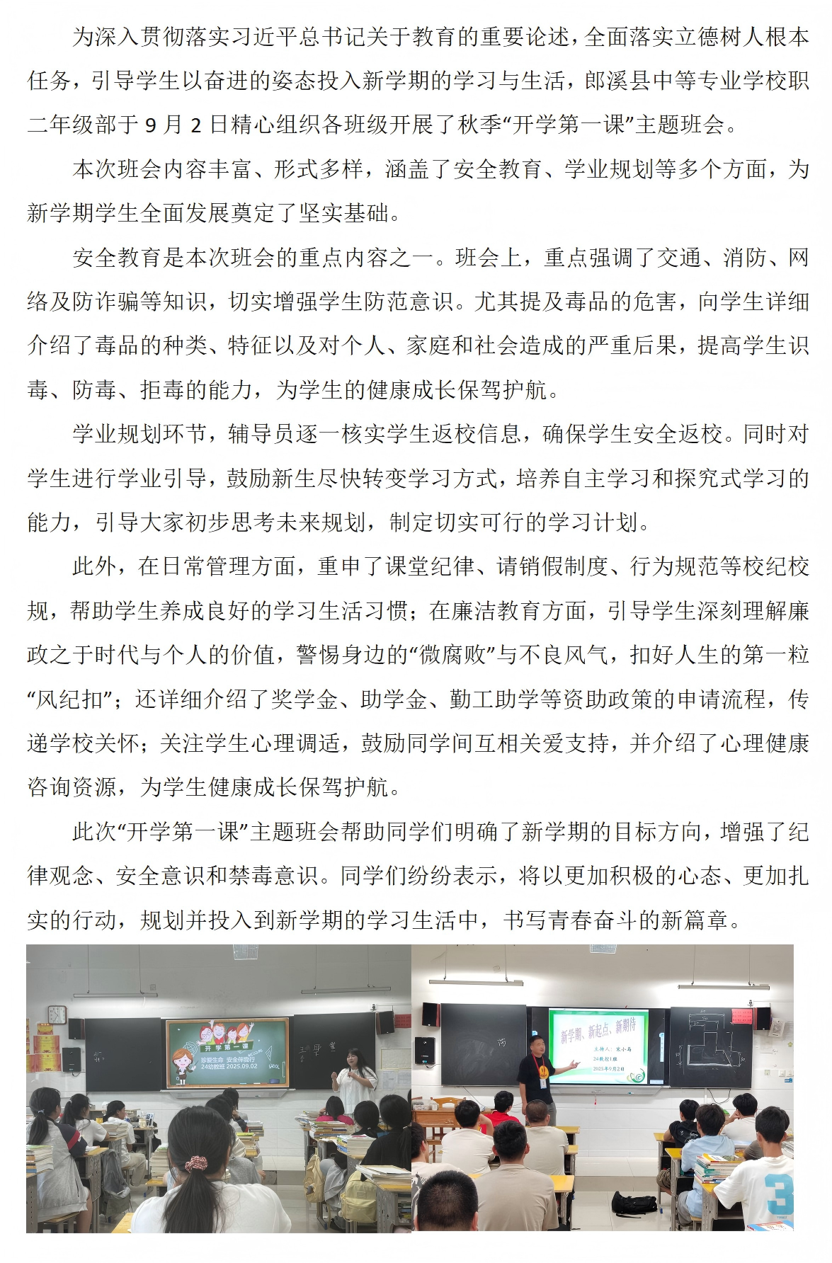 职二年级开学第一课主题班会