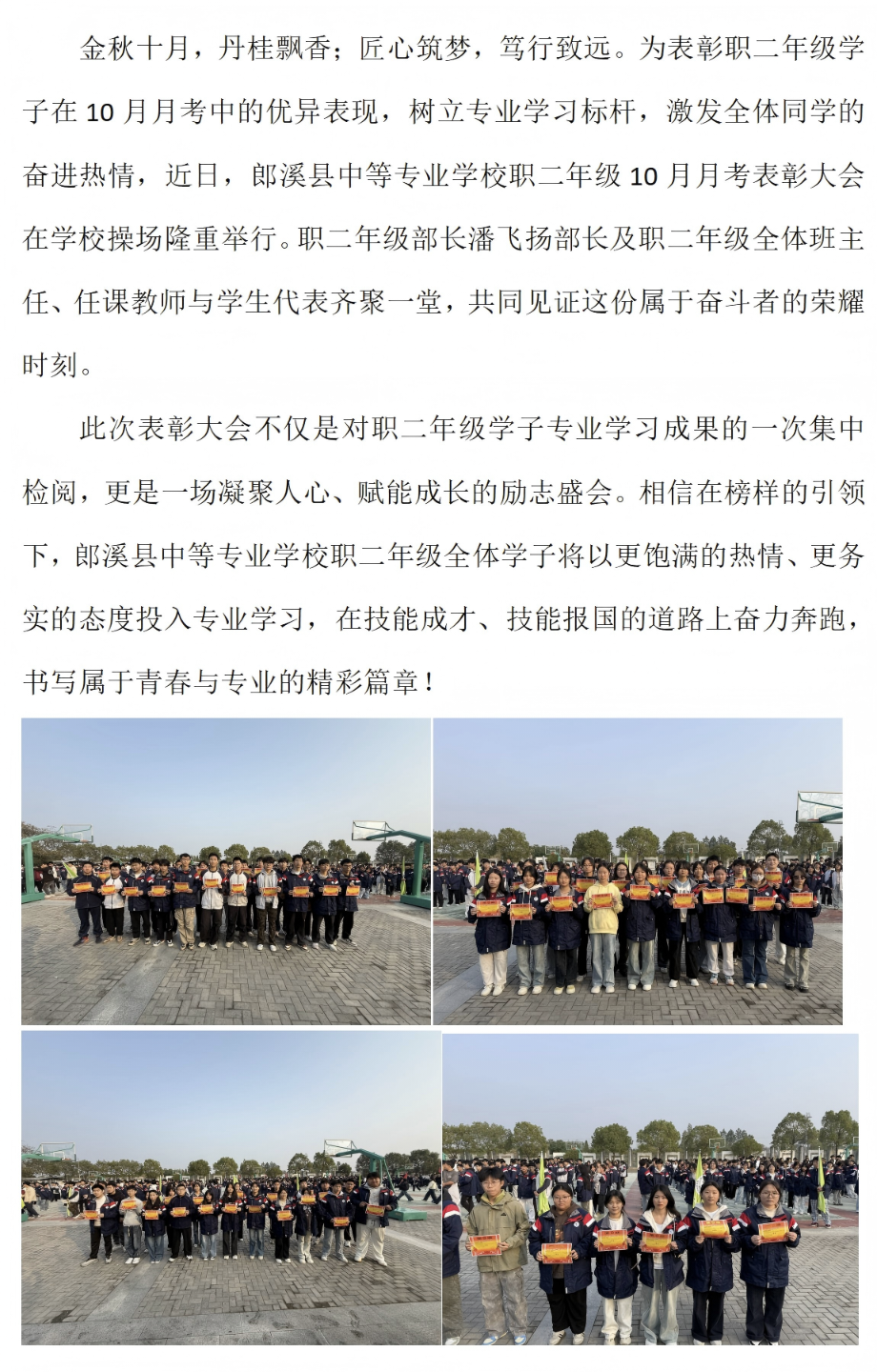 职二年就10月份月考进行表彰-尊龙凯时最新
