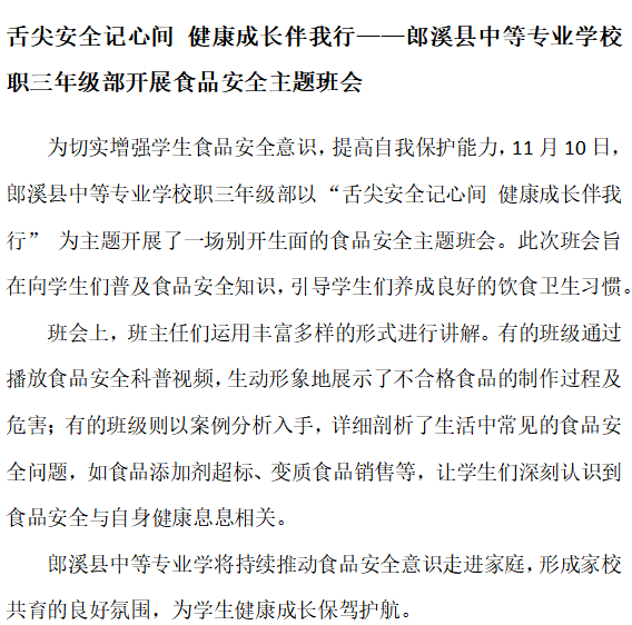 职三年级部召开食品安全主题班会-尊龙凯时最新