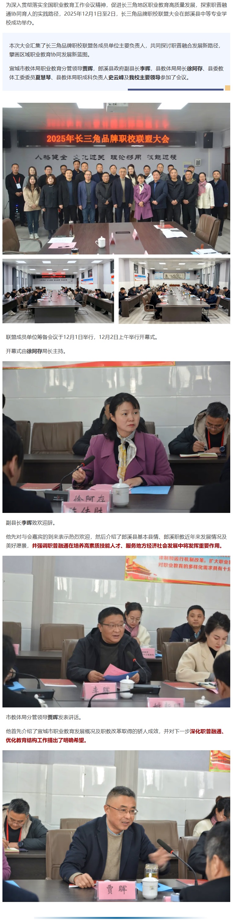 第五届长三角品牌职校联盟大会在郎溪县中等专业学校隆重召开